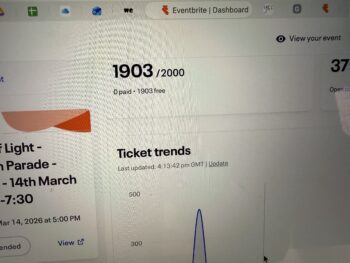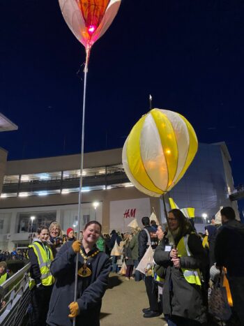 Looking forward to the River of Light Parade in Hemel Hempstead town centre.