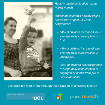 Planet Munch was created by Trim Tots CIC, in partnership with health experts at UCL Great Ormond Street Institute of Child Health. The programme is evidence-based and proven to help families: