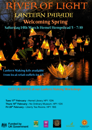 27th of January – Join us at Fishery Wharf Cafe in Boxmoor, Hemel Hempstead, to meet the team, find out how you can join, help make lantern kits and create some lanterns.
